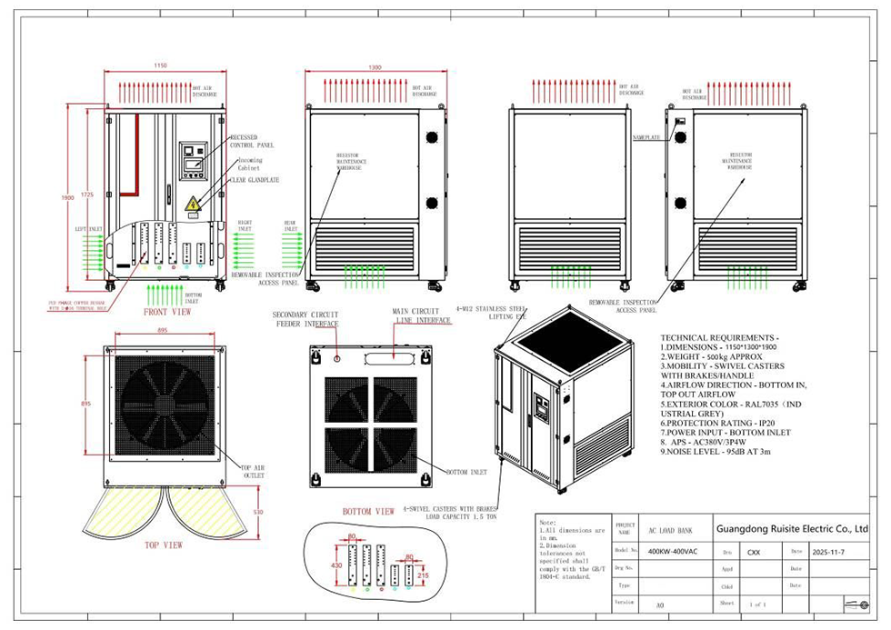 RST Electric giới thiệu Ngân hàng tải 400V 400V công suất lớn được thiết kế để xác nhận hệ thống nguồn AC quy mô lớn. Được thiết kế để thử nghiệm máy phát điện quy mô tiện ích, vận hành UPS quan trọng và các ứng dụng nguồn công nghiệp, Ngân hàng tải AC 400kW 400V này cung cấp tải điện trở có độ chính xác cao với điều khiển bước tiên tiến và các biện pháp bảo vệ an toàn toàn diện. Được chế tạo để hoạt động ở mức tải liên tục, nó có tính năng làm mát không khí cưỡng bức, khung gầm chắc chắn được xếp hạng IP20 và các chế độ điều khiển kép4 bao gồm HMI cục bộ và giao diện PC/Modbus từ xa. Cho dù được triển khai trong các nhà máy điện, trung tâm dữ liệu siêu quy mô hay cơ sở năng lượng tái tạo, ngân hàng tải này đều cung cấp độ tin cậy và độ chính xác cần thiết cho các môi trường thử nghiệm đòi hỏi khắt khe.