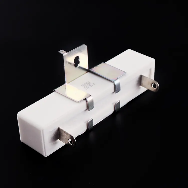 Cấu trúc của Điện trở xi măng công suất cao này ưu tiên tính dẫn nhiệt và độ ổn định cơ học. Phần tử điện trở—có sẵn ở dạng cuộn dây cho các ứng dụng có điện trở thấp, xung cao (xuống tới 0,1Ω) hoặc màng kim loại cho các yêu cầu có độ ồn thấp, điện trở cao (lên đến 100kΩ)—được bọc trong chất độn silic vô cơ và đặt trong hộp gốm chống cháy. Thiết kế SQHG độc đáo có cả dây dẫn xuyên tâm để kết nối điện và giá đỡ tích hợp có lỗ khoan trước (đường kính thường là 4,0mm) để cố định vít hoặc bu lông. Phương pháp kết nối kép này đảm bảo cả tính toàn vẹn về điện và an ninh cơ học, ngay cả trong môi trường có độ rung cao. Hướng gói nằm ngang, với trục dài của điện trở song song với bề mặt lắp đặt, giảm thiểu chiều cao đồng thời tối đa hóa diện tích tiếp xúc để truyền nhiệt.